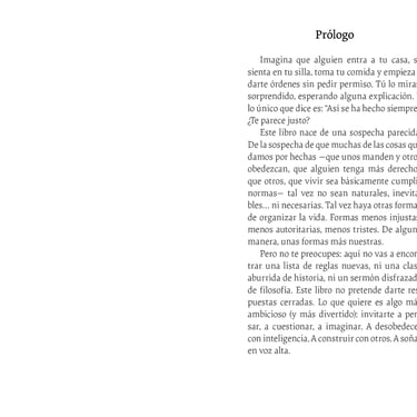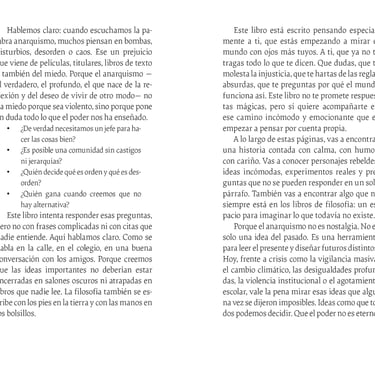 Este libro no tiene sermones, fórmulas mágicas o héroes perfectos. Lo que si tiene es una pregunta abierta: ¿cómo sería un mundo donde nadie mande solo porque sí?, un mundo donde vivir no signifique obedecer, sino cooperar, crear, cuidarse entre pares.