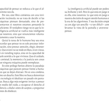 Más allá de las teorías, el libro aborda riesgos concretos: los sesgos que se esconden en los algoritmos y que reproducen desigualdades sociales, las cajas negras que deciden por nosotros sin darnos explicaciones, y el miedo creciente a que las máquinas nos vuelvan obsoletos. Estos dilemas no son abstractos: afectan nuestra educación, nuestro trabajo, nuestra política y hasta la manera en que nos relacionamos unos con otros.