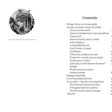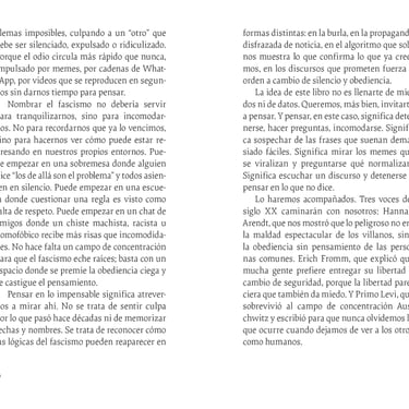 Este libro propone mirar de frente lo incómodo. Revisar cómo funcionaron los regímenes fascistas y totalitarios del pasado —sus discursos, símbolos y estrategias de manipulación—, pero sobre todo preguntarnos cómo esas mismas dinámicas aparecen hoy bajo nuevas formas. ¿Qué significa que las fake news tengan más alcance que un hecho comprobado? ¿Por qué es tan fácil que un discurso de odio se disfrace de humor viral? ¿Qué nos dice de nosotros que algunos prefieran la obediencia a la libertad de pensar por sí mismos?