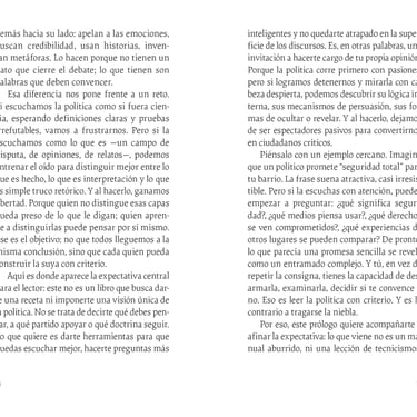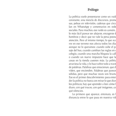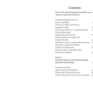 Este libro no entrega respuestas listas, sino herramientas para pensar mejor, detectar trampas retóricas y formarse una opinión propia. Porque la política no es solo cosa de expertos: es el espacio donde decidimos, juntos, cómo queremos vivir.