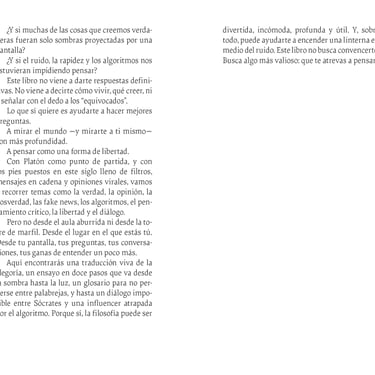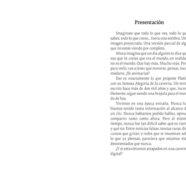Aquí encontrarás una versión poderosa de la Alegoría de la caverna, un ensayo sobre verdad, opinión, posverdad, fake news, algoritmos y pensamiento crítico, un glosario sin enredos y un diálogo imposible entre Sócrates y una joven influencer que cree que dudar es perder la fe.
