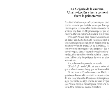 Pero hace más de dos mil años, Platón imaginó algo muy parecido: una caverna. Gente encadenada mirando sombras. Gente creyendo que esas sombras eran el mundo.